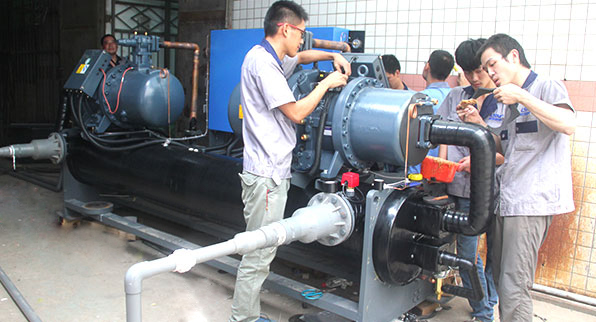哈爾濱工業(yè)大學(xué)客戶問詢燒結(jié)爐降溫冷水機(jī),在選擇合適的冷水機(jī)后,我們發(fā)現(xiàn)客戶使用條件存在一定問題,客戶燒 結(jié)爐在實驗室使用,由于面積較小,冷水機(jī)產(chǎn)生的熱量無法自然散失,在夏季無 法持續(xù)使用,當(dāng)環(huán)境溫度升高至43度以上時,冷水機(jī)及將會報警停機(jī)。